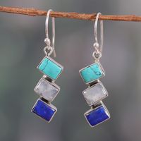 Geometric Blue-Toned Multi-Gemstone Dangle Earrings 'Oceanic Ladders' Item ID: 2671625611