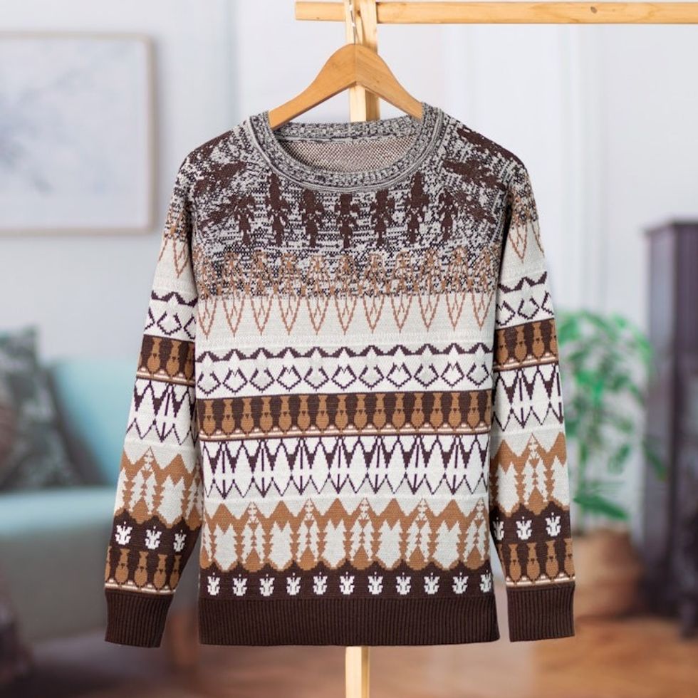 Geometric Brown Acrylic and Baby Alpaca Blend Pullover 'Chocolate Peaks' Item ID: 2670761148