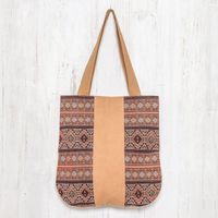 Geometric Cotton Shoulder Bag in Caramel from Thailand 'Lanna Caramel' Item ID: 2669897425