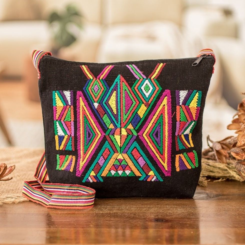 Geometric Cotton Sling in Black from Guatemala 'Chajul Nahual in Black' Item ID: 2671626032