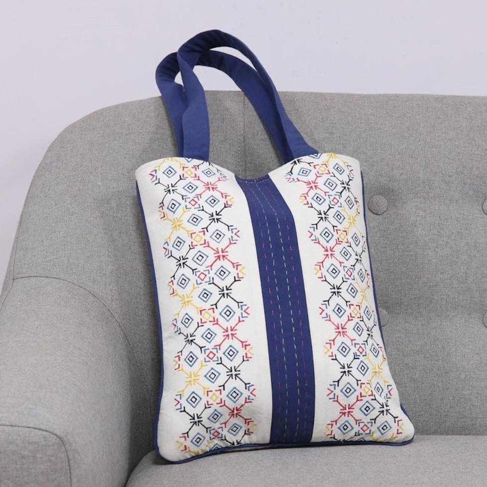 Geometric Embroidered Cotton Shoulder Bag from India 'Vibrant Embroidery' Item ID: 2671792533