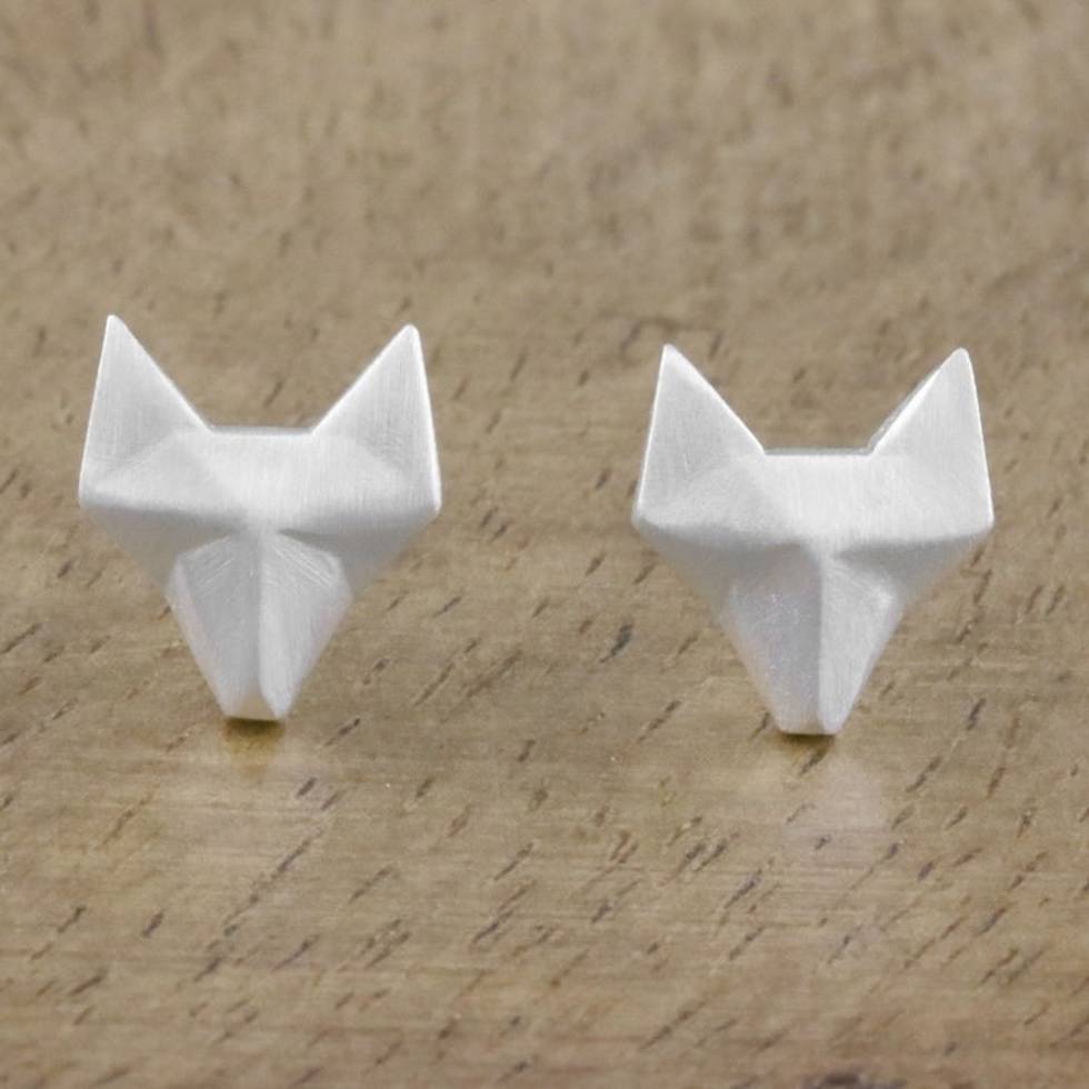 Geometric Fox Sterling Silver Stud Earrings from Thailand 'Fox Lover' Item ID: 2671641456
