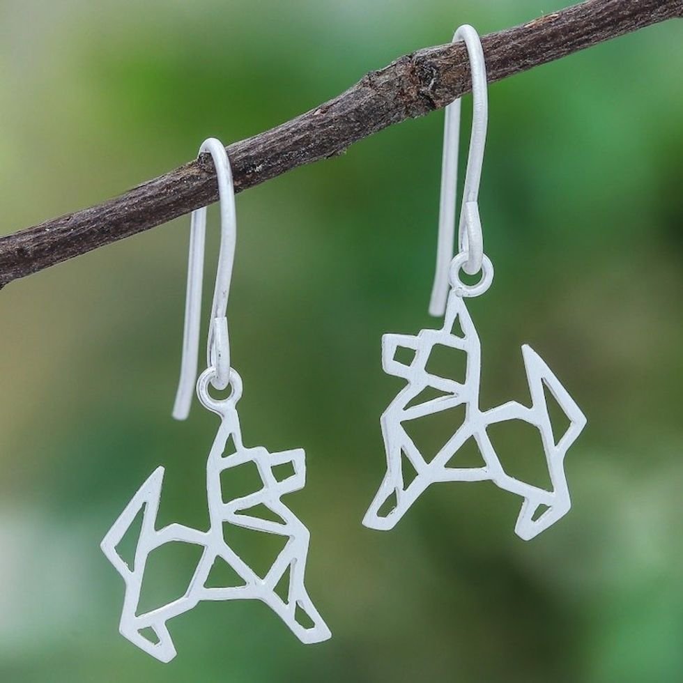 Geometric German Shepherd Sterling Silver Dangle Earrings 'Geometric German Shepherd' Item ID: 2671640853