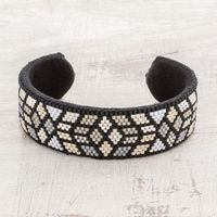 Geometric Glass Beaded Cuff Bracelet from El Salvador 'Striking Geometry' Item ID: 2671776668