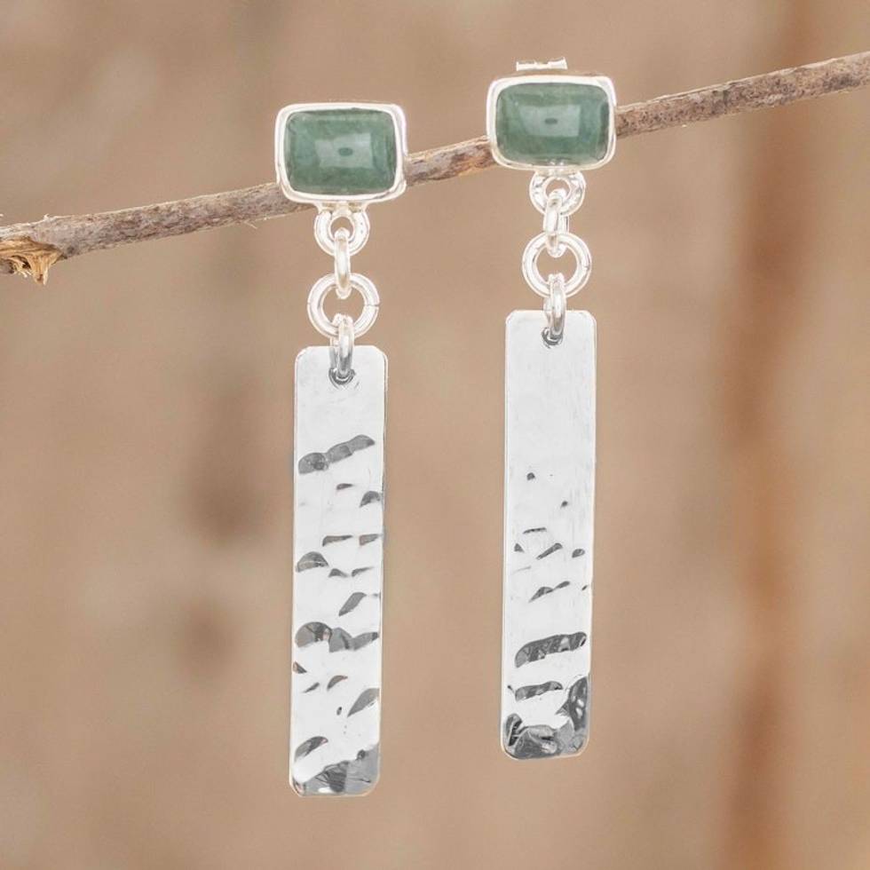 Geometric Green Jade Dangle Earrings from Guatemala 'Geometric Attraction' Item ID: 2671777232
