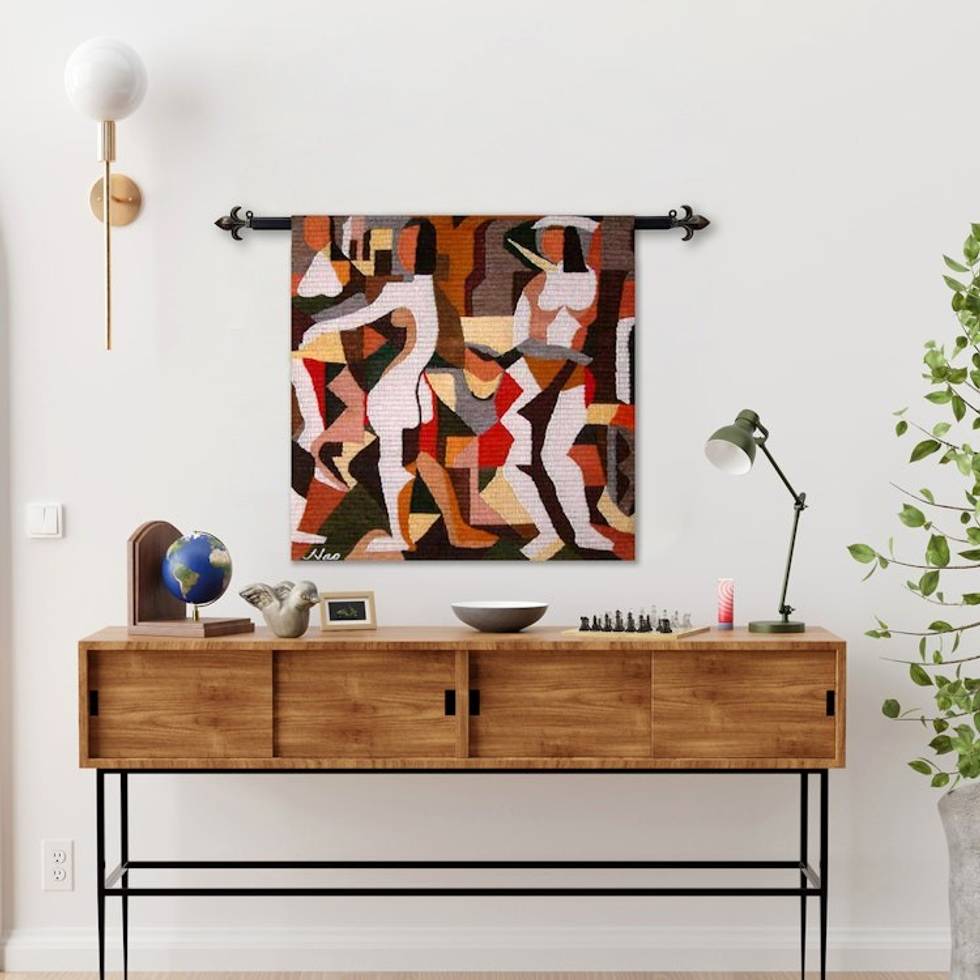 Geometric Handwoven Wool Tapestry and Wall Hanging 'Silhouettes' Item ID: 2671691188