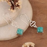 Geometric-Inspired Amazonite Cabochon Gem Dangle Earrings 'Gems of Balance' Item ID: 2676664539