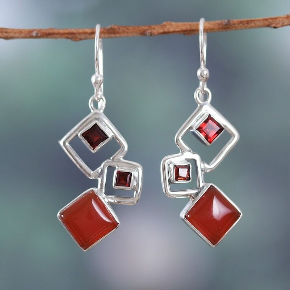 Geometric Natural Garnet and Carnelian Dangle Earrings 'Nouvelle Red' Item ID: 2671786844