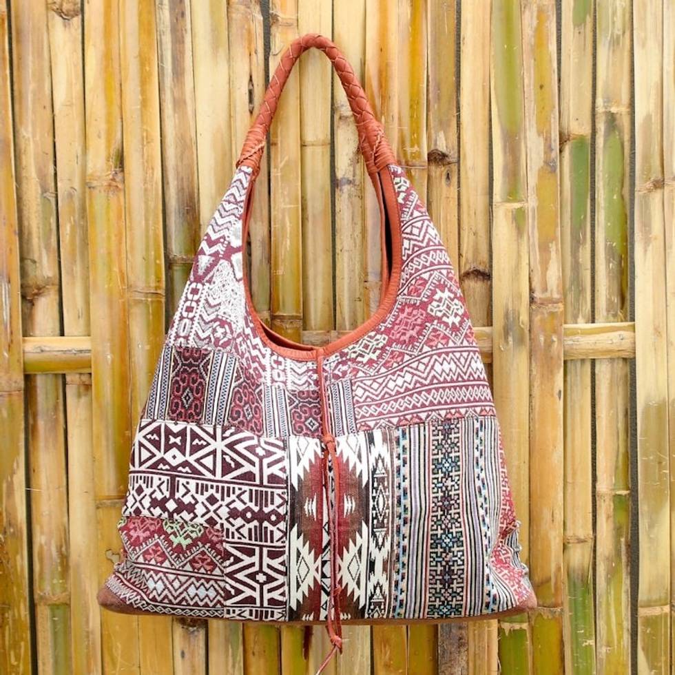 If you're looking for a great bag this is it! It's not only beautiful with the braided leather handles, trim and tassles but I love the fabric exterior! The pattern is really pretty especially for summer and there is so much room in this bag with the 3 large openings, and smaller pockets too, making a perfect bag for vacations and day trips! Comfortable to wear.