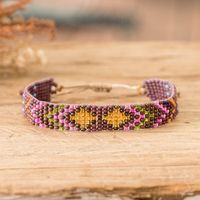 Geometric Purple and Golden Glass Beaded Wristband Bracelet 'Majestic Atitlan' Item ID: 2669923627