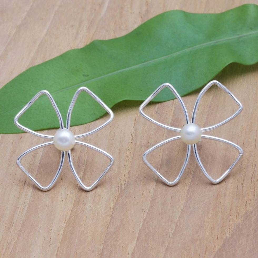 Geometric Sterling Silver Button Earrings with White Pearls 'Silhouettes of Perfection' Item ID: 2671762995