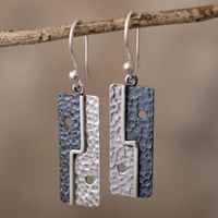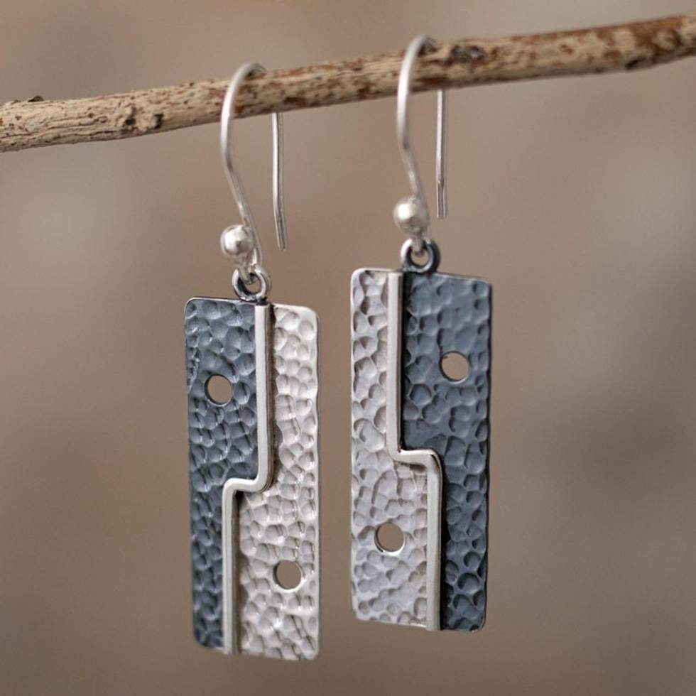 Geometric Sterling Silver Dangle Earrings from Peru 'Bold Geometry' Item ID: 2671691166