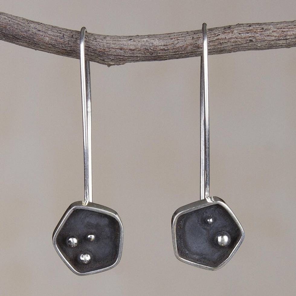 Geometric Sterling Silver Drop Earrings from Peru 'Pentagon Mystery' Item ID: 2671400026