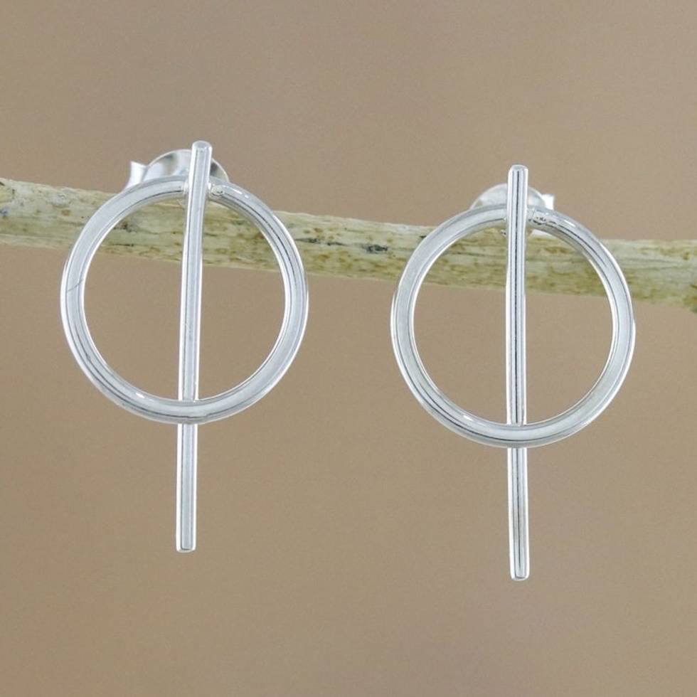 Geometric Sterling Silver Drop Earrings from Thailand 'Modern Glyphs' Item ID: 2671801220
