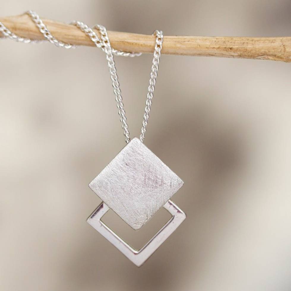 Geometric Sterling Silver Pendant Necklace 'Square Off' Item ID: 2671807511