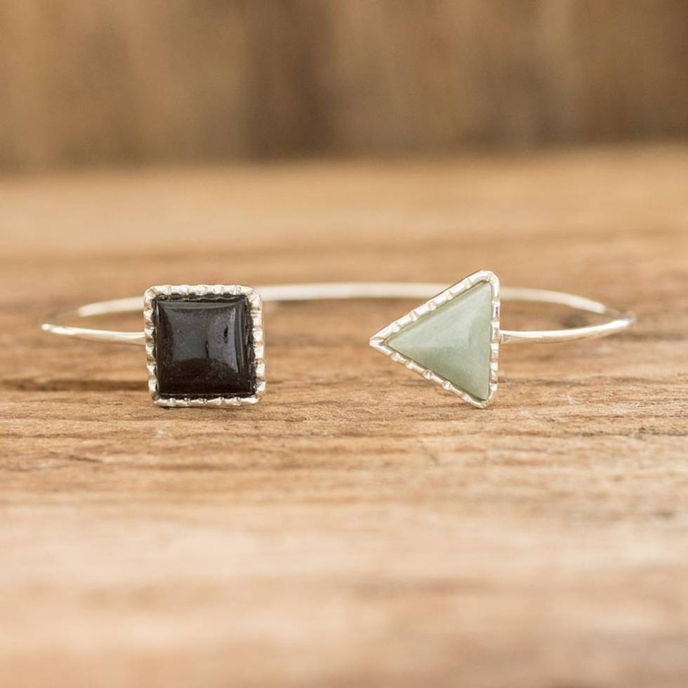 Geometric Themed Jade Cuff Bracelet with Sterling Silver 'Geometric Shapes II' Item ID: 2671772391