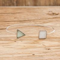 Geometric Themed Sterling Silver and Jade Cuff Bracelet 'Geometric Shapes in Green' Item ID: 2671771655