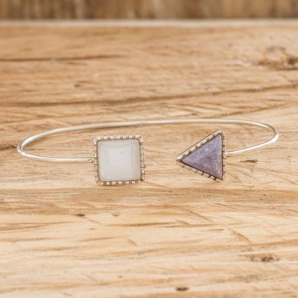 Geometric-themed Sterling Silver and Jade Cuff Bracelet 'Geometric Shapes in Lilac' Item ID: 2671772231