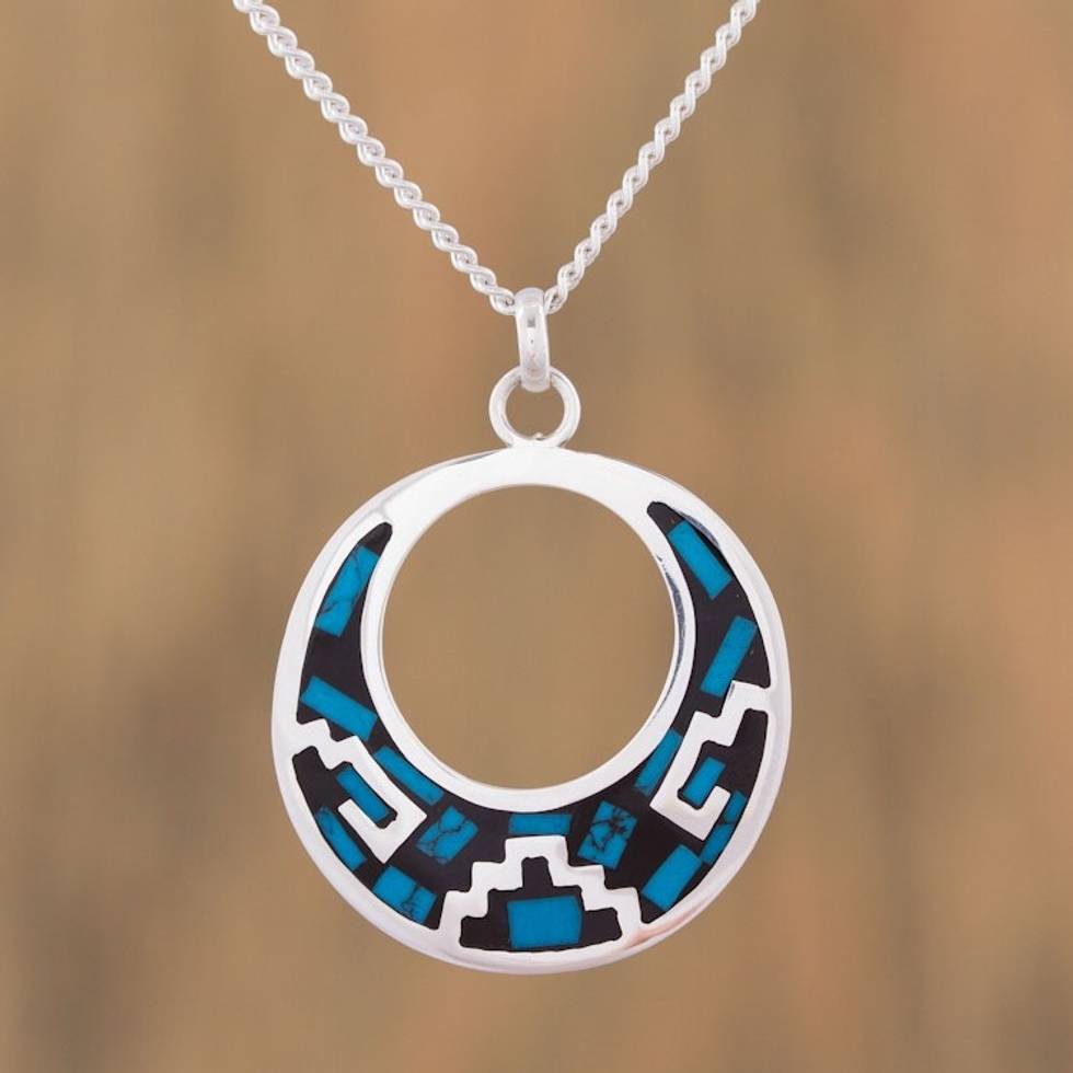 Geometric Turquoise Pendant Necklace from Mexico 'Window of History' Item ID: 2669932069