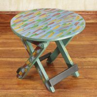 Ghana Hand Crafted and Painted Sese Wood Fish Folding Table 'School of Fishes' Item ID: 2671803649
