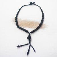 "Working with beads and discs of recycled plastic, Ghanaian artisan Tina Quaye creates an eco-friendly Y-necklace. Black in color, this necklace makes a statement for environmental responsibility. The artisan names this accessory Tutum Yefe, which means 'black is beautiful' in the Akan language."