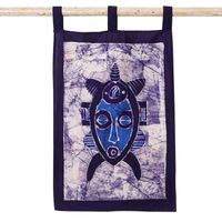 Ghanaian Hand-Painted Cotton Wall Hanging in Blue Hues 'Debidebi' Item ID: 2671805445