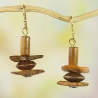 Ghanaian Handcrafted Sese Wood and Coconut Shell Earrings 'Prosperous Sika' Item ID: 2671803917