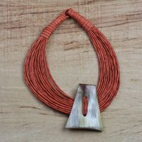 Ghanaian Orange Leather and Bone Statement Cord Necklace 'Laami' Item ID: 2671816071