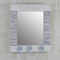 Ghanaian Wood Wall Mirror with Three Accessory Hooks 'Reflections of Tomorrow' Item ID: 2671803828