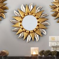 Gilded Bronze and Aluminum Wood Sunflower Wall Mirror 'Peruvian Sunflower' Item ID: 2671819382