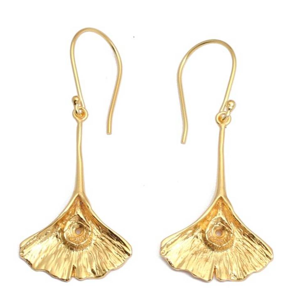 Ginkgo Leaf-Themed Textured 18k Gold-Plated Dangle Earrings 'Gorgeous Ginkgo' Item ID: 2676659370