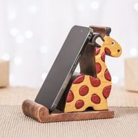 Giraffe-Themed Hand-Carved Raintree Wood Phone Holder 'Safari Support' Item ID: 2671640898