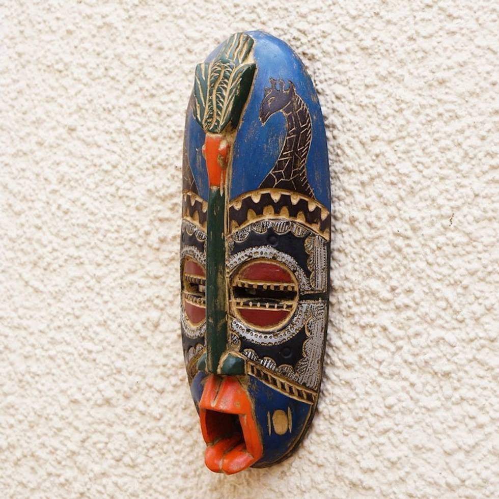 Giraffes and Bird on African Wall Mask Hand Carved Wood Art 'Giraffe Art' Item ID: 2671801163