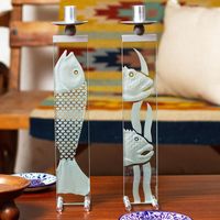 Glass and Aluminum Candleholders with Fish Set of 2 'Enlightened Fish' Item ID: 2669898109