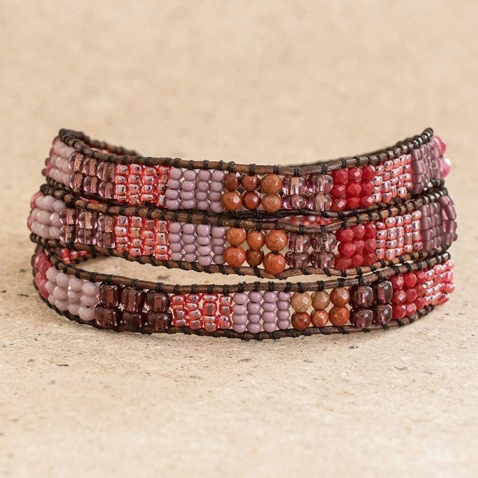 Glass Bead Braided Bracelet in Tones of Rose and Brown 'Earth Rose' Item ID: 2671772401