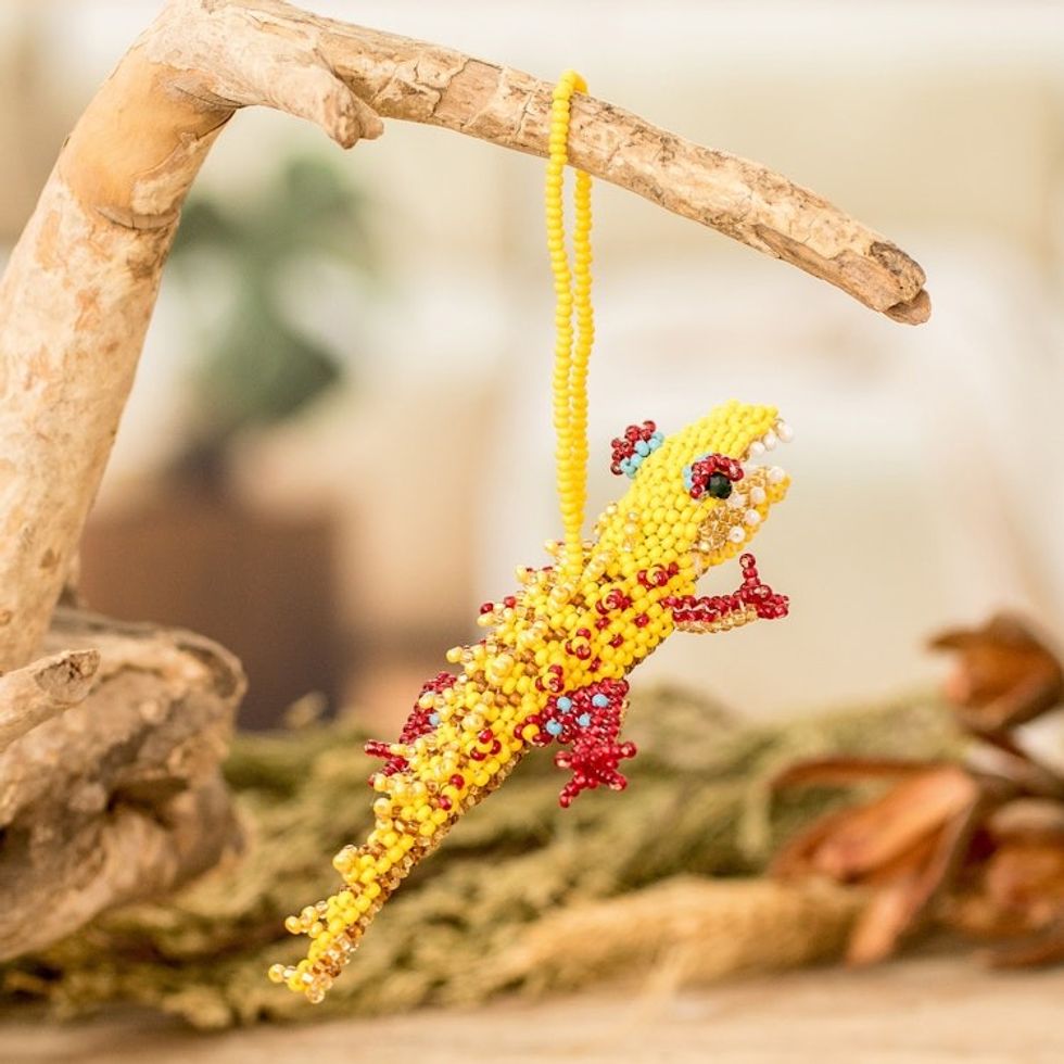 Glass Beaded Crocodile-Themed Ornament in Yellow and Red 'Vibrant Ferocious Friend' Item ID: 2671769117