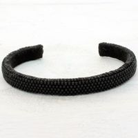 Glass Beaded Cuff Bracelet in Solid Black from El Salvador 'Beautiful Horizon in Black' Item ID: 2671778398