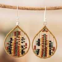 Glass Beaded Dangle Earrings in Brown and Golden 'Coffee Contrasts' Item ID: 2671769806