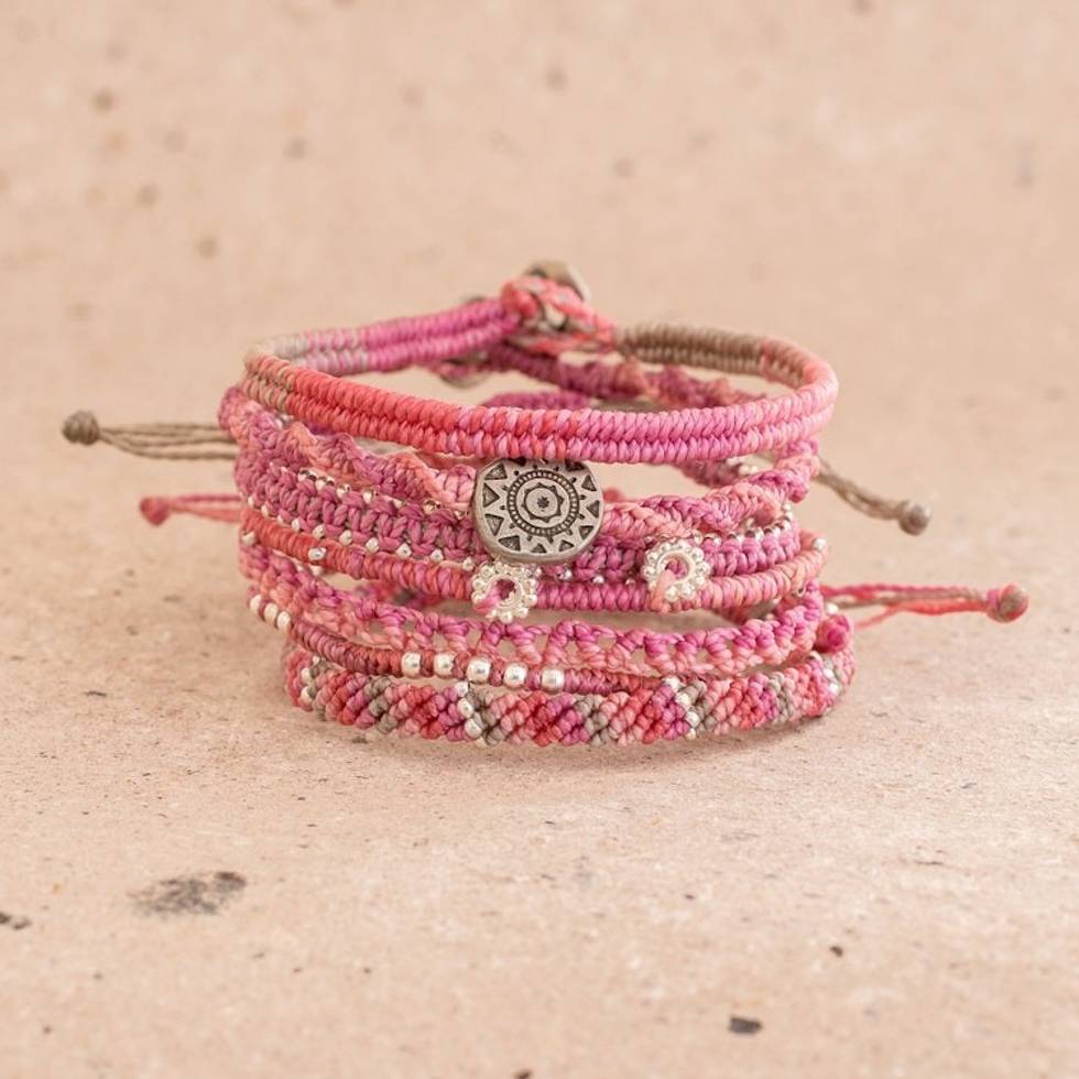 Glass Beaded Macrame Bracelets in Fuchsia Set of 7 'Boho Histories in Fuchsia' Item ID: 2671777135