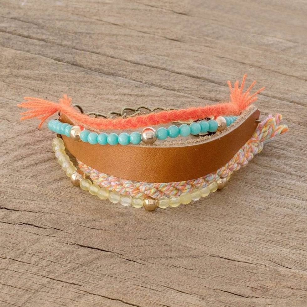 Glass Beaded Sepia Leather Wristband Bracelet 'Sepia Combination' Item ID: 2671777120