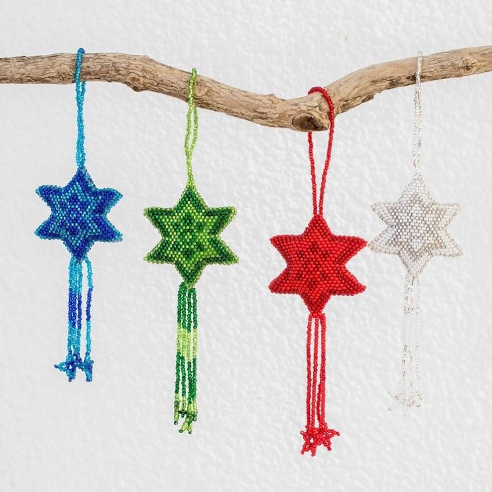 Glass Beaded Star Ornaments in Assorted Colors Set of 4 'Colorful Fleeting Stars' Item ID: 2671776788