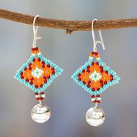 Glass Beaded Sterling Silver Dangle Earrings from Mexico 'Sunrise Diamonds' Item ID: 2671808948