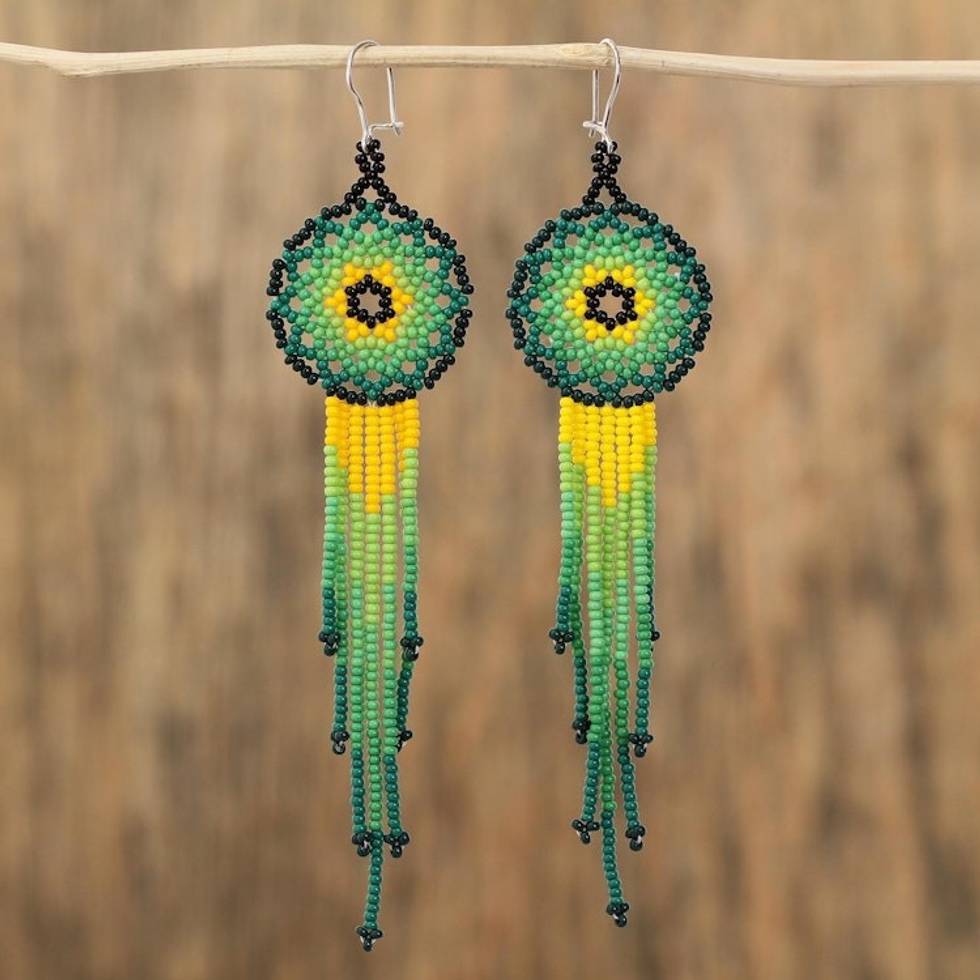 Glass Beaded Waterfall Earrings in Green from Mexico 'Verdant Rain' Item ID: 2669932076