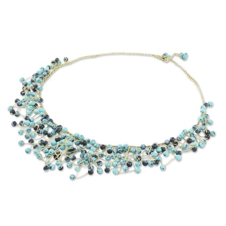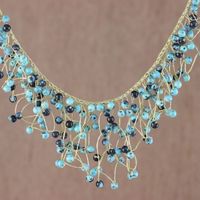 Glass Beaded Waterfall Necklace in Blue from Thailand 'Fantasy Rain in Blue' Item ID: 2671798640