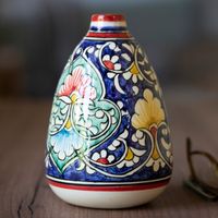 Glazed Ceramic Vase with Hand-Painted Floral Leaf Motifs 'Fergana Flowers' Item ID: 2669935345