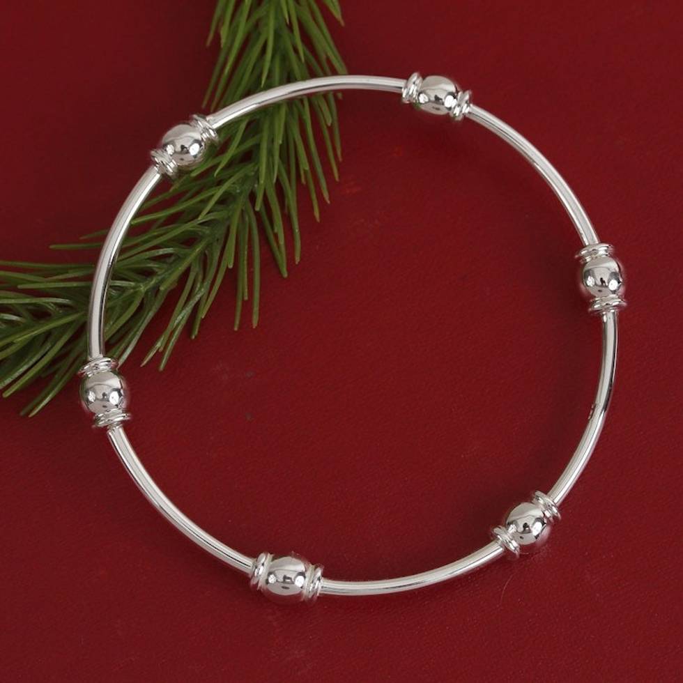 Gleaming Sterling Silver Bangle Bracelet from Mexico 'Six Beads' Item ID: 2671808888