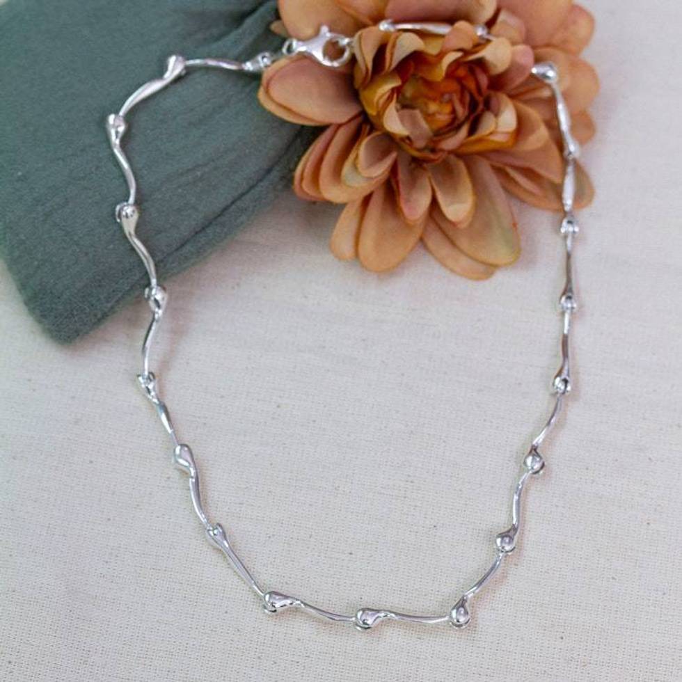 Gleaming Sterling Silver Link Necklace from Mexico 'Radiant Buds' Item ID: 2676647055