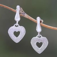 Glittering Sterling Silver Heart Earrings from Bali 'Love Sparkle' Item ID: 2671744944