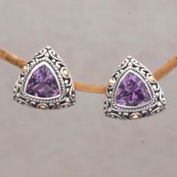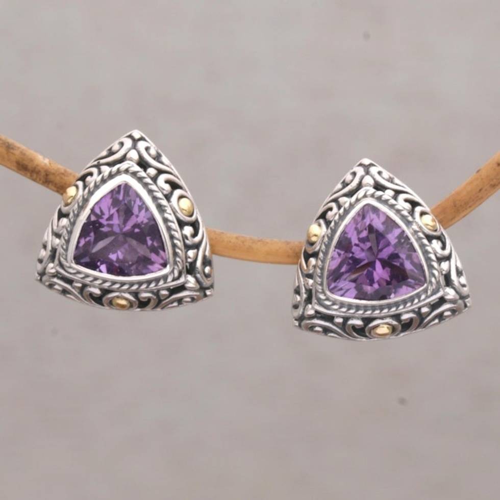 Gold Accent Amethyst Button Earrings from Bali 'Mystic Force' Item ID: 2671821607