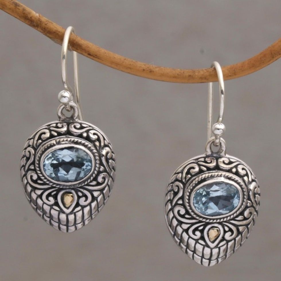 Gold Accent Blue Topaz and 925 Silver Earrings from Bali 'Swirling Crests' Item ID: 2669887432